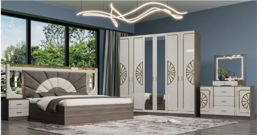 طقم خشبي حديث على الطراز التركي، وقاعة كاملة مزدوجة لإطار خشبي، وأطقم أثاث غرفة نوم رئيسية فاخرة كاملة